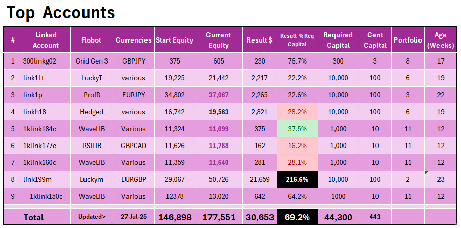 We regularly create portfolios based on the best linked account options available at the time. This is to give linking traders account linking options to consider. We then follow the progress of these portfolios to measure the success of those trading decisions but to also shows how important it is to trade decisions for an extended time rather than switching from account to account. It also shows how portfolios spread the risk of trading because you can not make perfect trading decisions all the time.